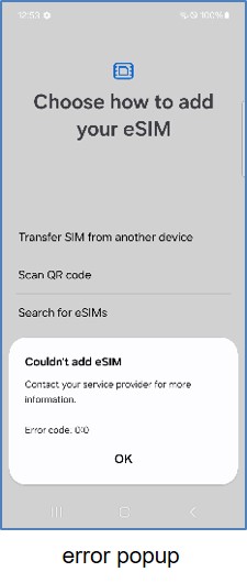 / Sunrise(Swiss) carrier are occurring error popup saying 'Couldn't add eSIM'