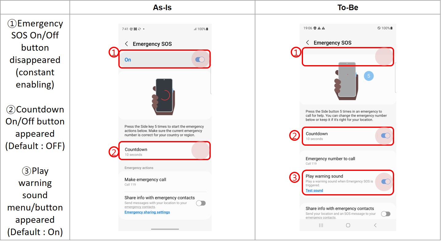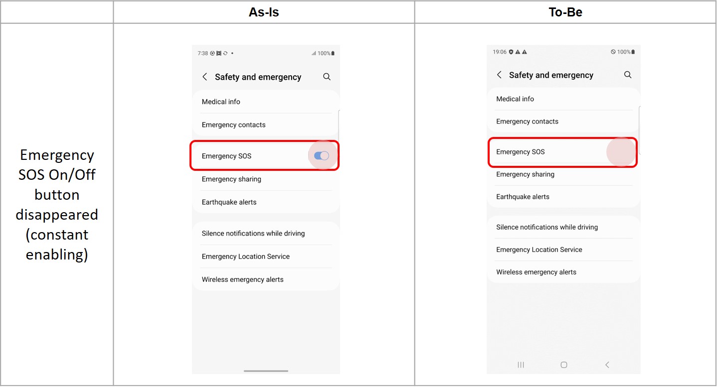 Emergency SOS to enhance the usability, there has been disappeared Emergency