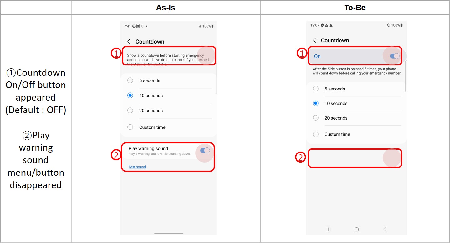 changing Countdown button to ON when sending an Emergency SOS, and when