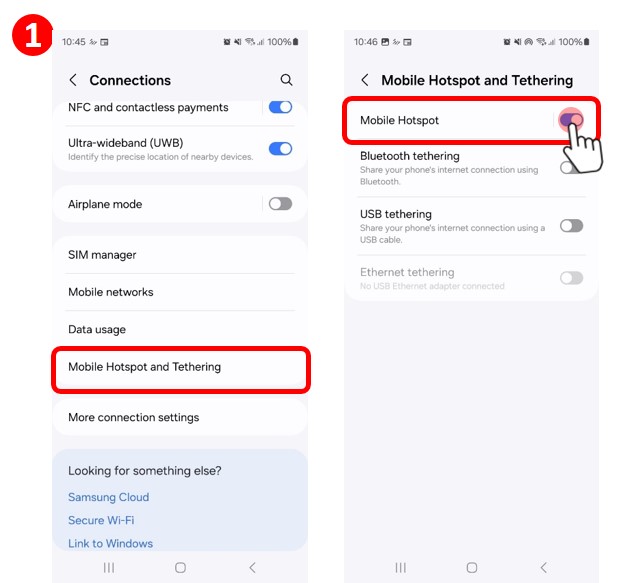 Hotspot and Tethering > turn On 'Mobile Hotspot', or
