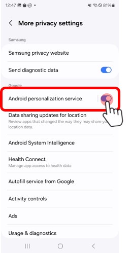 of Galaxy AI function(Android personalization service) does not work(not showing)