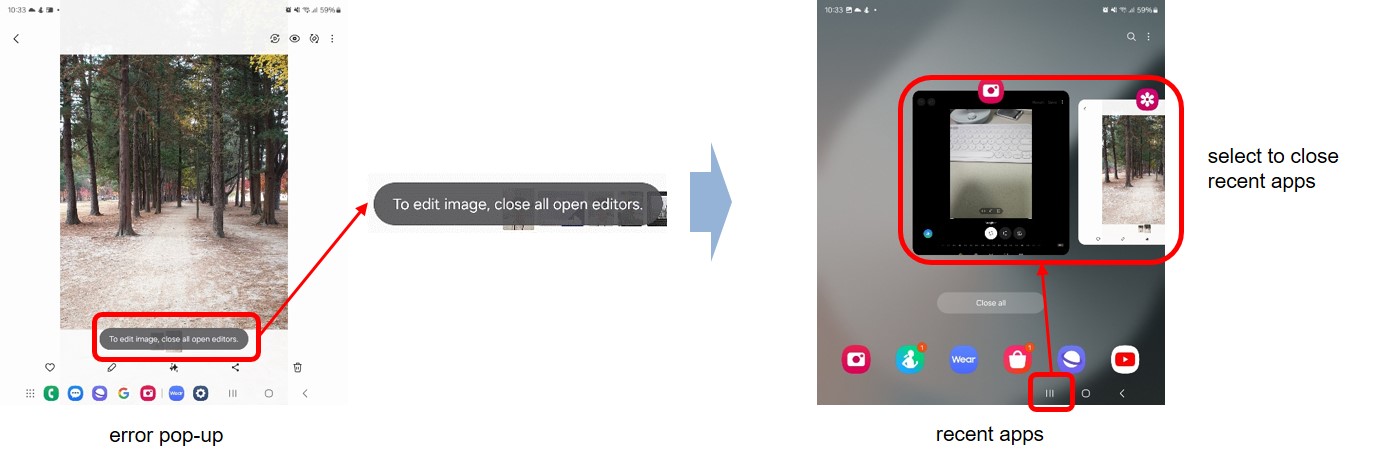 assist or Edit functions used in apps such as Camera or Gallery. Only one
