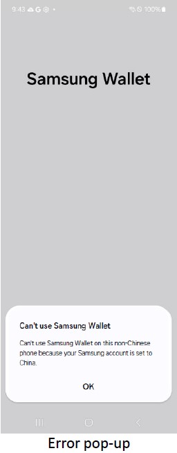 Chinese Samsung Account user's can not setup non Chinese Samsung Wallet.