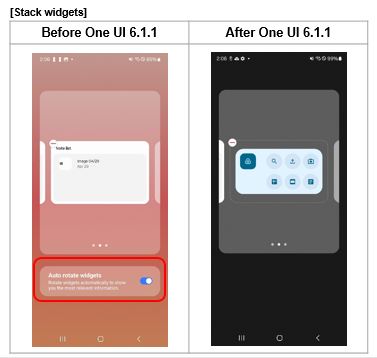 Stack widgets is excluded starting with One UI 6.1.1 SW version to provide