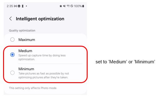 the quality optimization setting to 'Medium' or 'Minimum' in the Intelligent