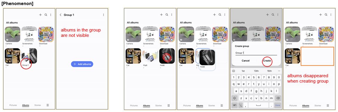 One UI 6.1.1 SW version, the albums disappear when creating group albums in