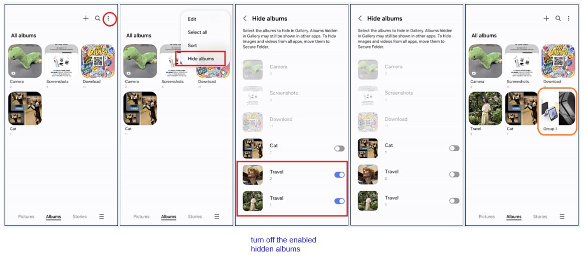 name are turned on in [Gallery > Albums > More options > Hide albums]
