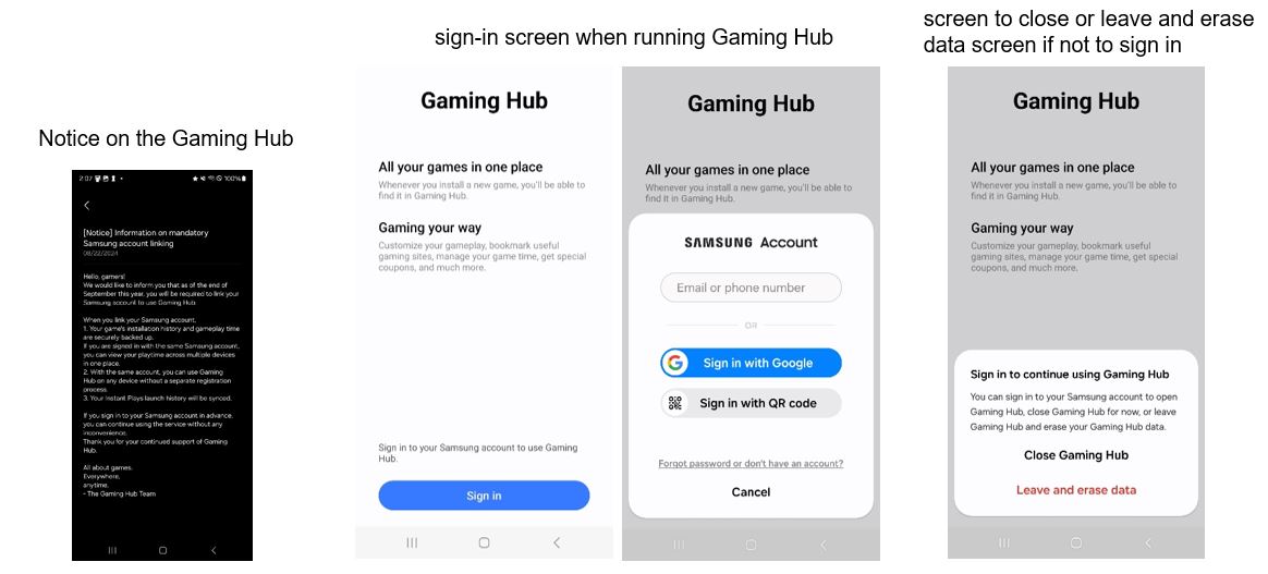 Samsung account to use Gaming Hub after updating to the latest version starting