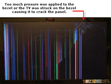 be caused by impact to the LCD panel. Physical damage to our TVs is not covered