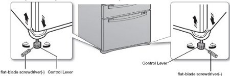 - Samsung fridges only have leveling/stabilizing legs in the front. There are no leveling legs in the back.