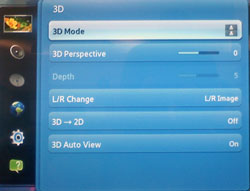 Mode - Selecting a 3D mode will turn the 3D feature of the TV on. The 3D