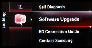 the ▲ or ▼ arrow to select the Support section of the menu, and then press