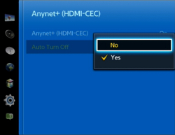 Feature (Menu > System > Anynet+ > Anynet+ (HDMI-CEC): Off)