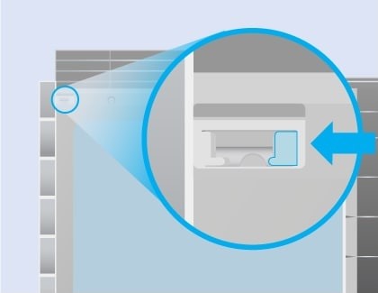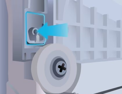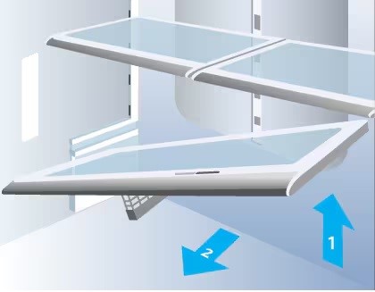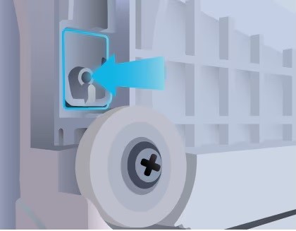 the roller wheel. Push and hold both tabs inwards and lift the shelf out