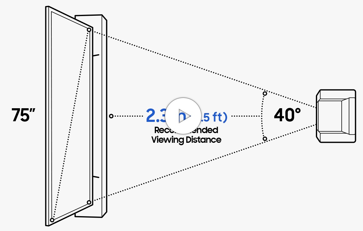 75 inch TV, that means sitting 90 inches, or 2.3 meters away.