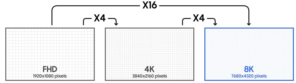 The resolution in 8K TVs is 4 times higher than that of 4K UHD TVs, and 16