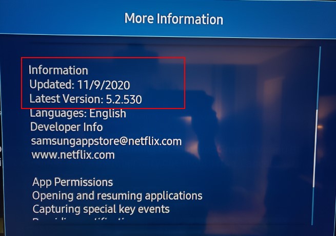 Enter Netflix App> Navigate to Get Help > Info page as per picture