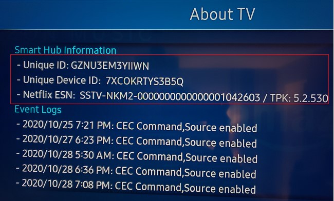 - Confirm if Netflix ESN ID Exists from About this TV menu.