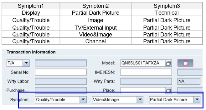 Select Symptom "Partial Dark Picture" on CIC system, if customer