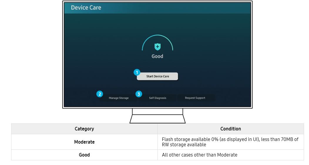 The Device Care diagnoses your TV and shows the list of the issues and status